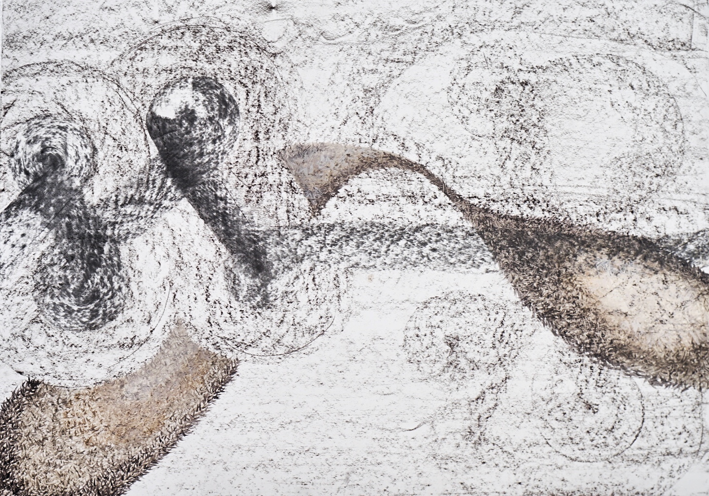 Charcoal and oil paint on paper